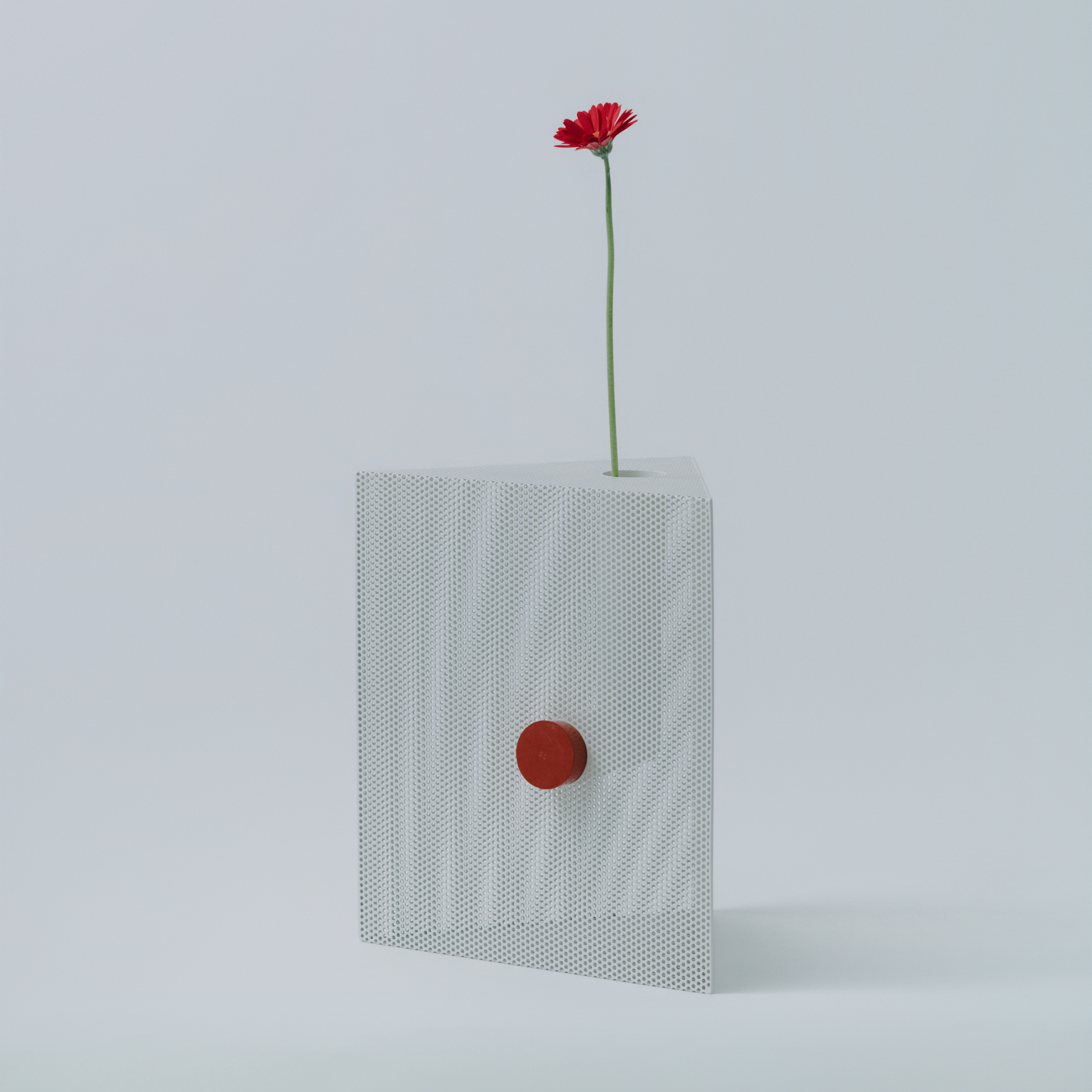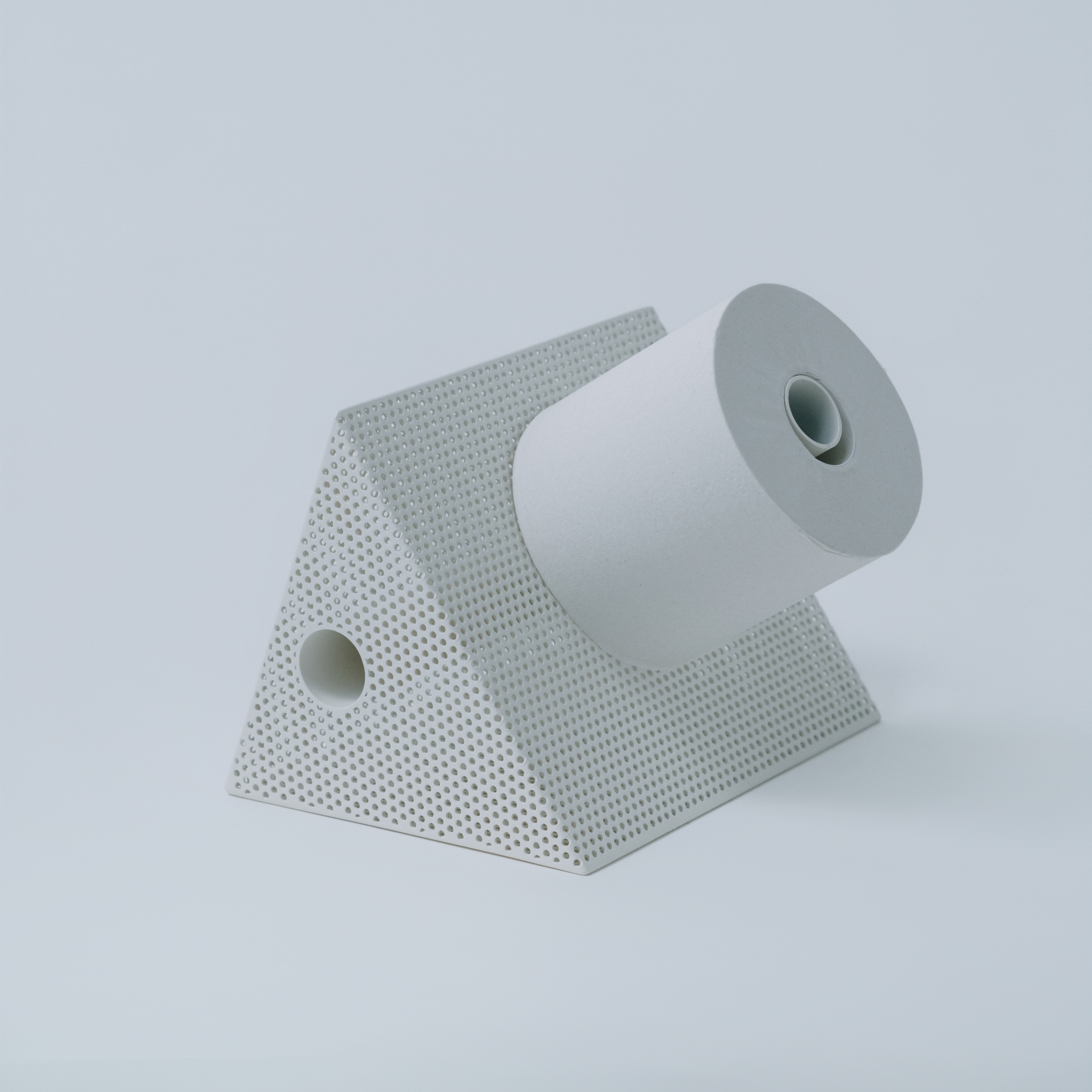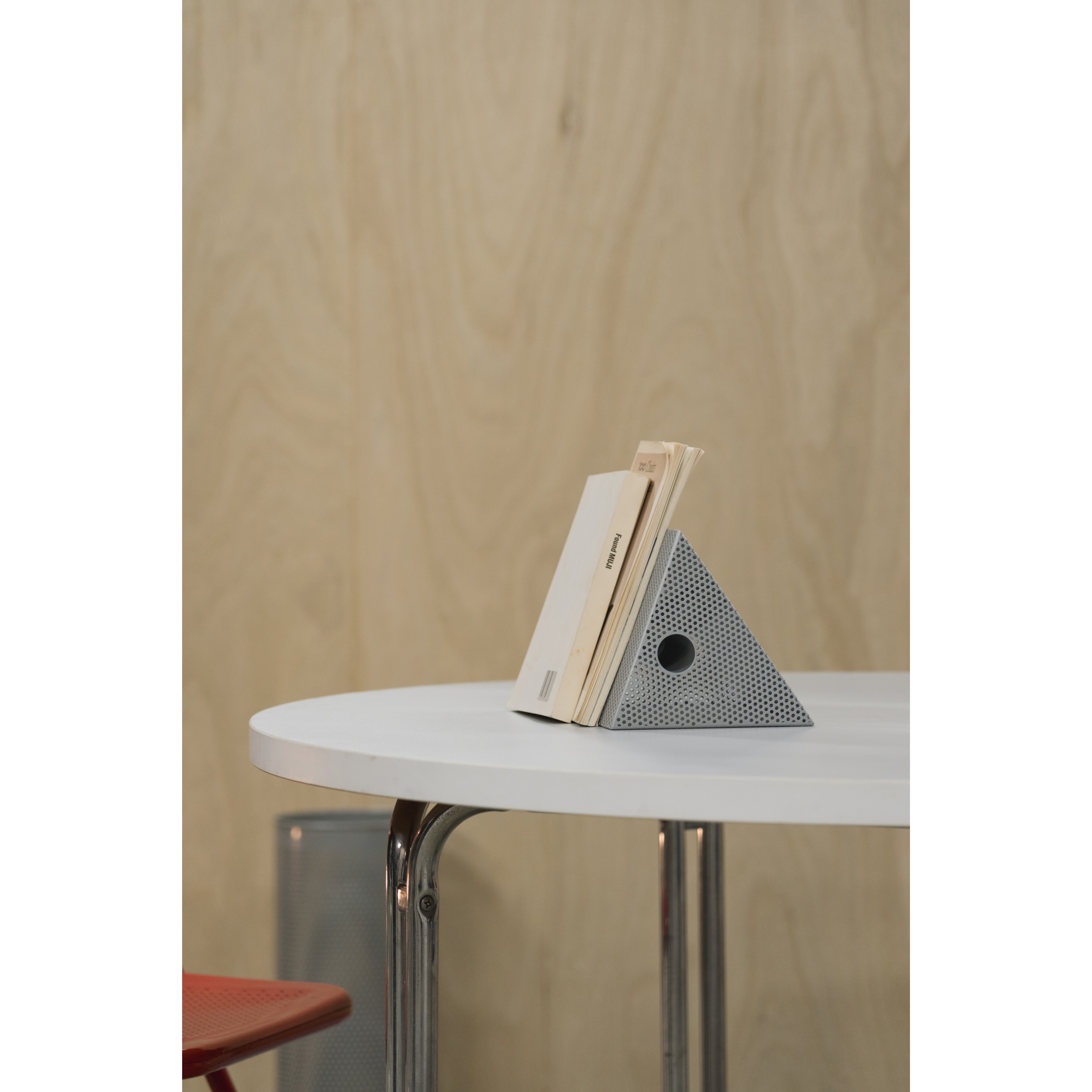 Punching Blockがつくるのは、機能そのものというより、置かれることによって生まれる見え方です。向きや位置、周囲との距離が変わることで、閉じた塊のように見えたり、内側に通った線がふと現れたりと、ひとつの立体の中に複数の印象が立ち上がります。